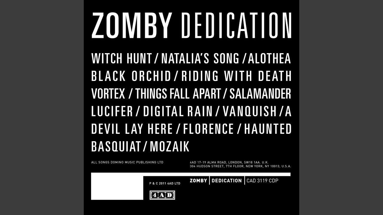 Zomby tracks come with the hallucinatory “Natalia’s Song,” featuring softly jutting vocal samples from a female Russian vocalist, and “Basquiat,” a pensive piano-and-string-drone piece. Although it wasn't the intent, they’re more in the spirit of old-school 4AD --