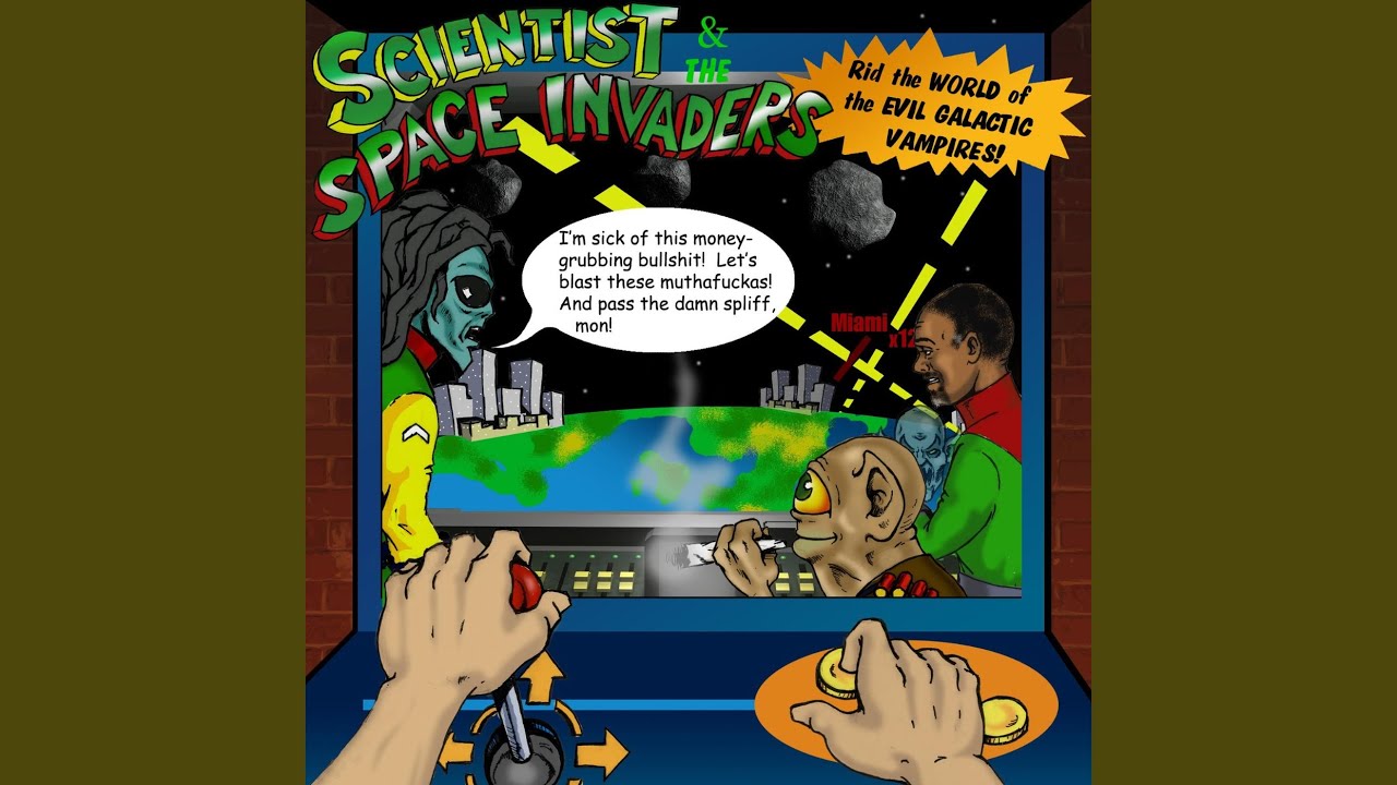 Scientist first "met" the Space Invaders on this 1981 Greensleeves release. The cosmic theme is well served on ten effects-riddled tracks, with the rockers-style material being littered by all manner of stratosphere-breaking sounds from the mixing board. However, compared to the bustle of earlier efforts like Scientist Rids the World of the Evil Curse of the Vampires,